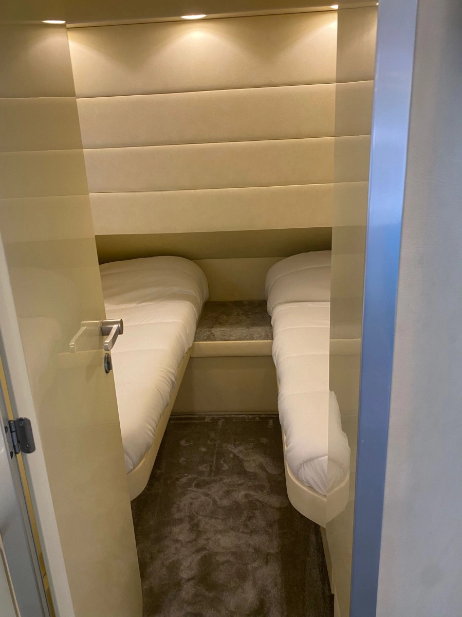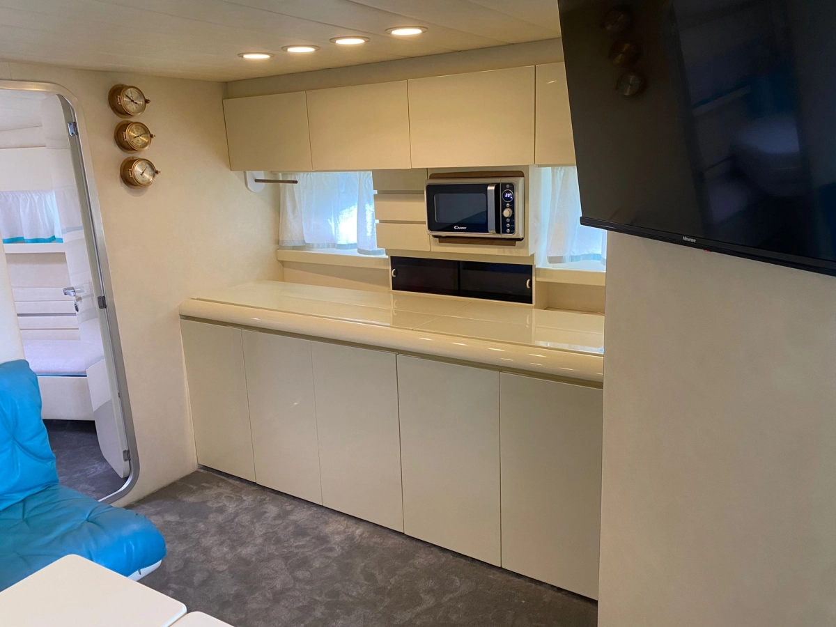 3 Cabinas 3 Baños, Hélice de proa nueva 2024, Cargador de baterías 2024, Generador, Toma tierra 220V, Salón convertible, Plataforma de baño, Solárium proa y bañera, Escalera de baño, Pasarela hidráulica, Bandera Polonia, Cocina gas, Nevera eléctrica, Horno microondas, Aire acondicionado, Equipo de Audio, Bomba de agua 2024 ,Moqueta interior nueva 2024, Tapicería exterior nueva 2024, TV en salón, Toldo Bimini.