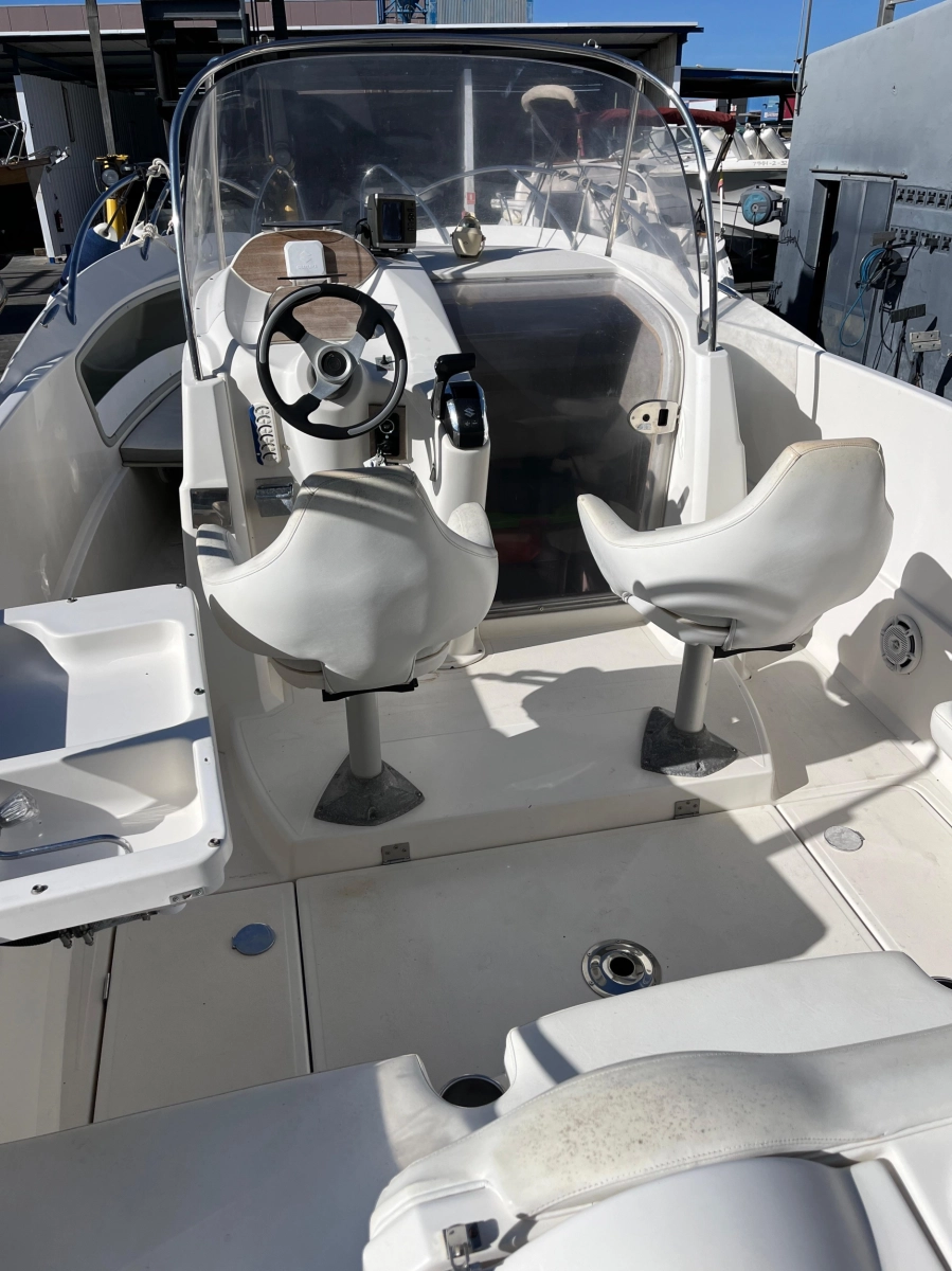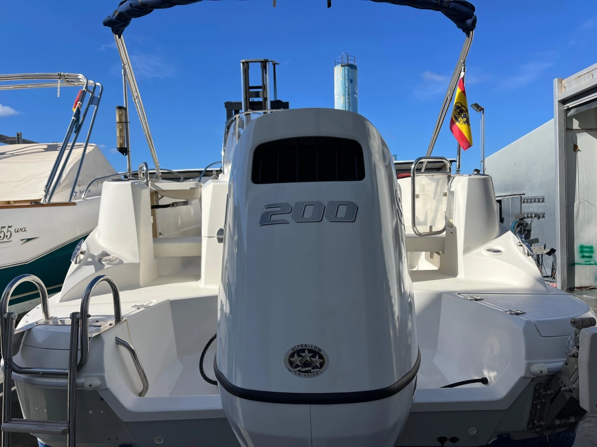 Embarcación ideal para la navegación diurna, homologada para 8 personas. Su distribución consiste en un gran solarium en proa, una consola central con gran espacio de estiba, y una popa funcional convertible en salón, con mesa y toldo parasol. Lo mejor: motor de 200CV Suzuki montado en el 2022, con sólo 70 hrs de navegación.
