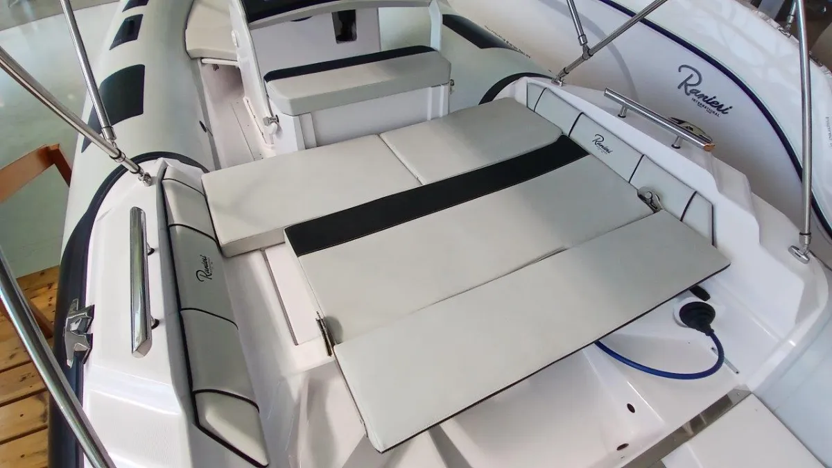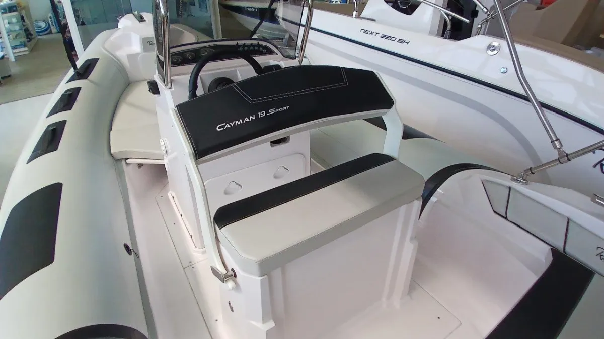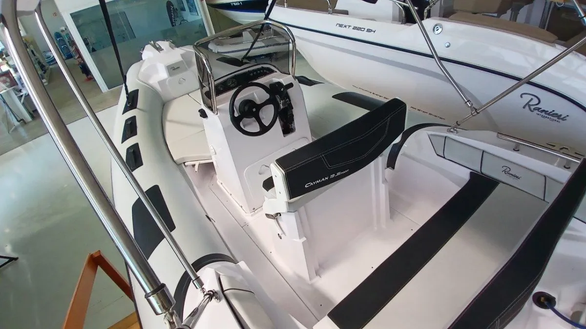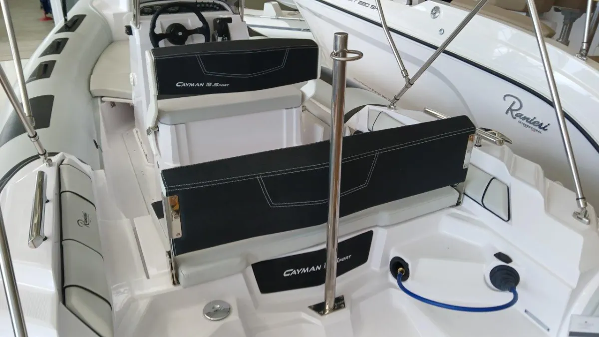 Embarcación en stock. Entrega inmediata. Fotos de archivo, los colores y el equipo pueden no corresponder exactamente a la unidad ofrecida. Modelo Cayman 19 Sport del astillero italiano Ranieri International, de 5,95 m de eslora.