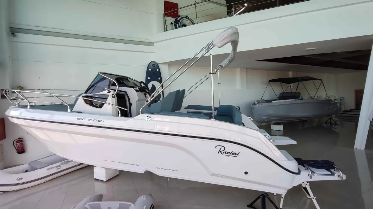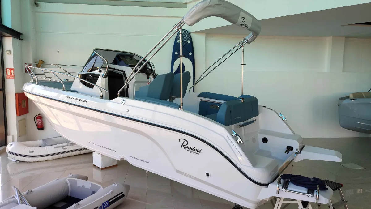 Embarcación nueva en stock para entrega inmediata. Modelo Next 240 SH del astillero italiano Ranieri International, de 7,80 m de eslora.