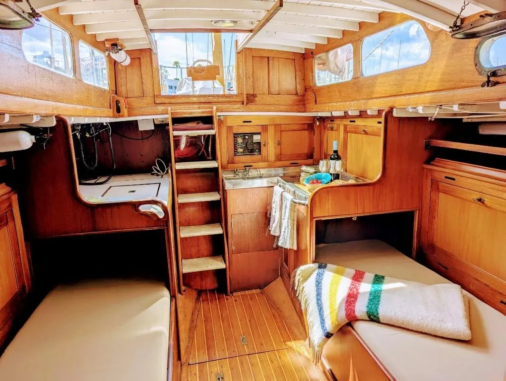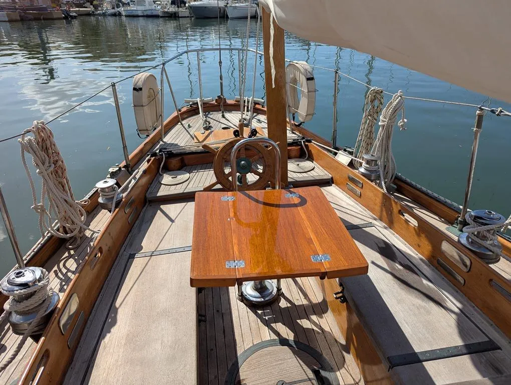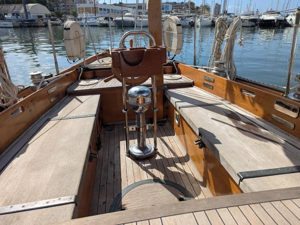 Introducing the Philip Rhodes R27 built by Abeking and Rasmusen, Germany in 1955. Adventuress was imported immediately to America after launch and stayed there enjoying a number of refits from her 5 owners. Covid forced her current owner to bring her to Europe in 2020. Her full history is available from the current owner. She is registered in Great Britain and she is VAT paid in both America and the EU. The sails, a main sail, furling genova and a reacher are from 2017. The Navegation electronics from B&G is from 2015. The batteries (2 x 80 Ah) are new from 2025. The engine, a Yanmar diesel 3HM35F with 30 hp has approx. 600 hours. She is in fine shape and ready for cruising and classic racing. Adventuress came second in class at the Costa Blanca Classic yacht regatta 2 years ago.