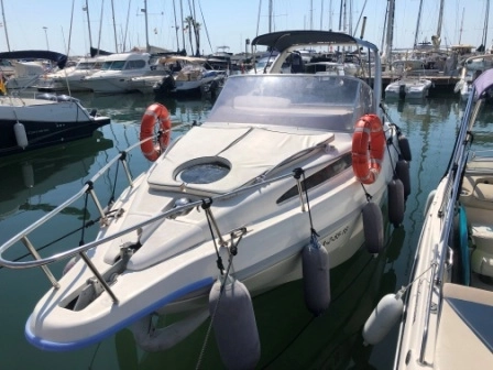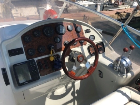 2 Cabinas 1 Baño, Molinete eléctrico, GPS MAP 188 Sounder, Toldo Bimini, Colchonetas proa, Bomba de achique, Nevera eléctrica, Cocina eléctrica, Radio CD + Altavoces TV en salón, Tapicería exterior nueva 2024, Toldo Bimini nuevo 2024.