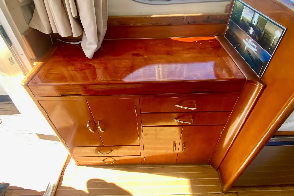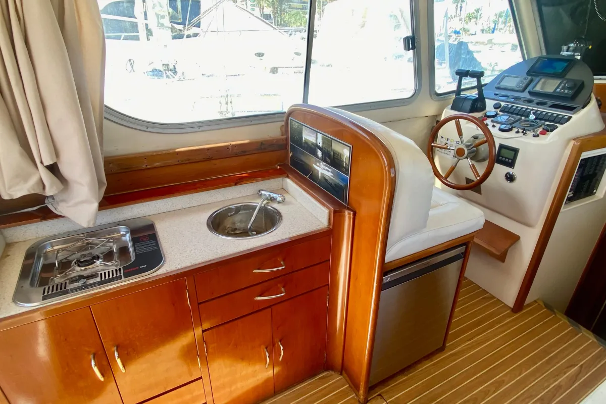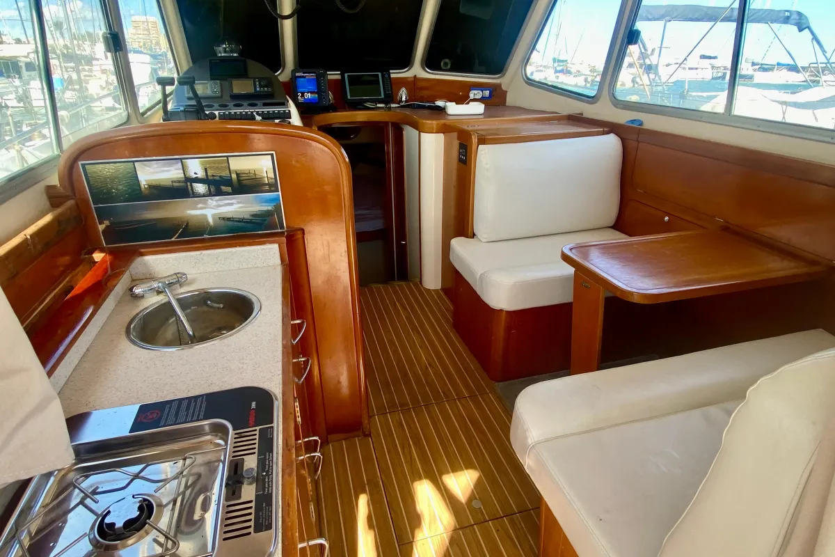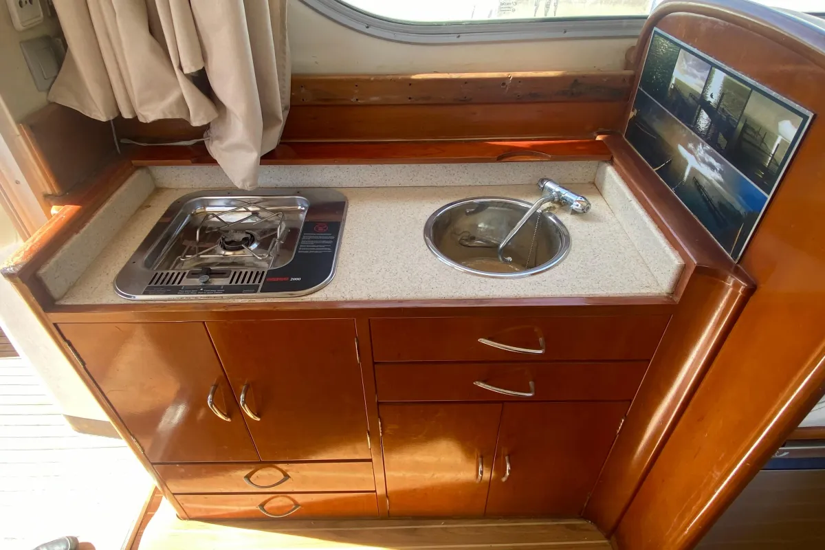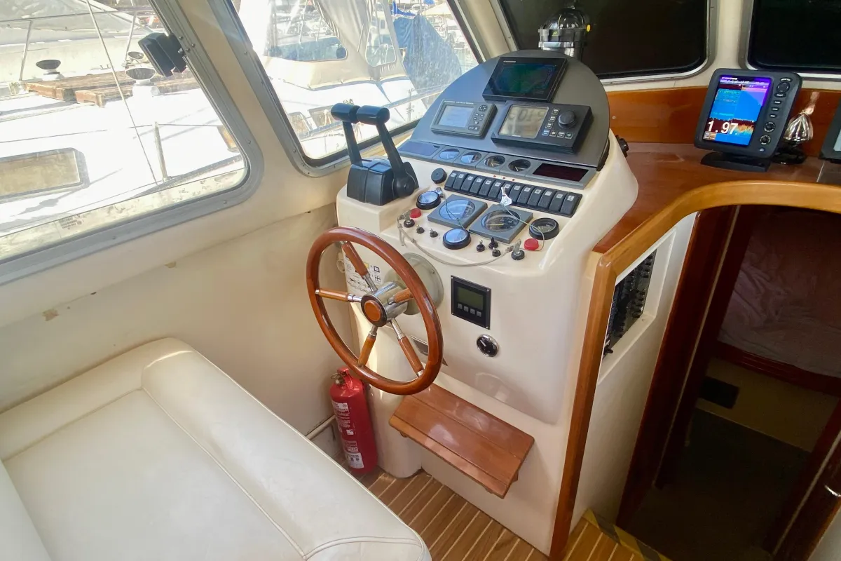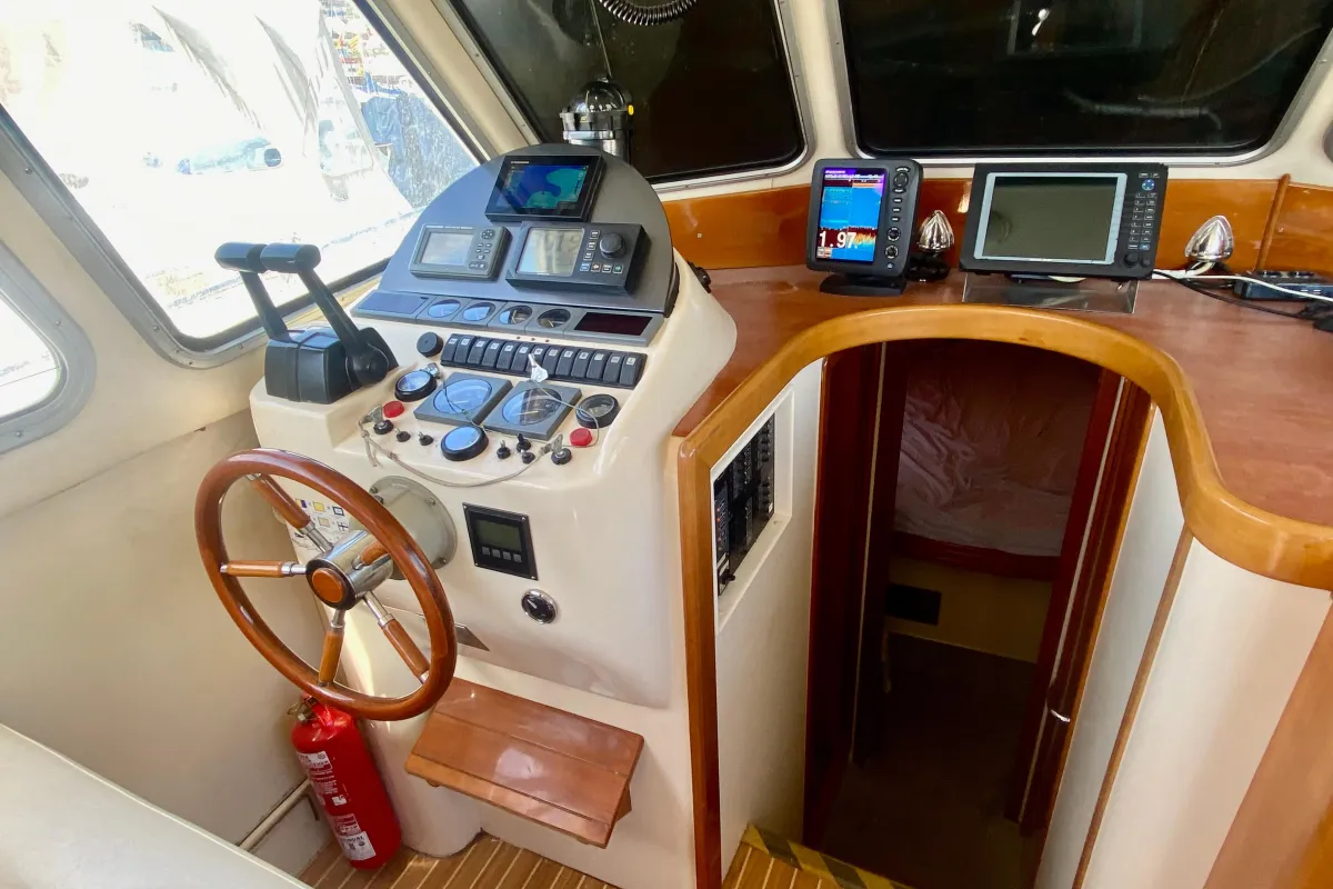 With an overall length of 10.3 meters, this boat features a robust fiberglass hull designed in a deep vee shape, ensuring stability and agility on the water. Powered by twin Yanmar 6 LPA DTP inboard engines, each delivering an impressive 260 horsepower, this vessel is equipped for both thrilling fishing adventures and leisurely cruising. With 3000 hours of experience under its belt, these engines promise reliability and power. The accommodation includes two well-appointed cabins and two heads, providing ample space for relaxation and convenience. An electric windlass enhances the boating experience, making anchoring effortless. The Rodman 1120 is a perfect blend of functionality and comfort, ideal for avid anglers and families alike, ready to create unforgettable memories on the water.