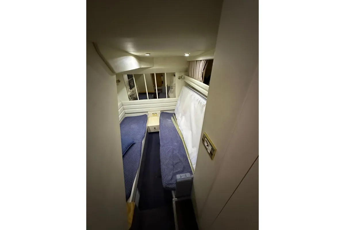 [EN] Introducing the stunning 1994 Sunseeker Camargue 55, a remarkable sports cruiser that combines elegance with performance. Measuring an impressive 17.8 meters in overall length, this vessel boasts a sleek fiberglass hull with a deep Vee shape, ensuring a smooth and stable ride on the water. Powered by dual Detroit diesel engines, each delivering 860 horsepower, the Camargue 55 achieves a cruising speed of 26 knots and a maximum hull speed of 40 knots, making it perfect for exhilarating adventures. The innovative joystick control enhances maneuverability, while the electric windlass adds convenience to anchoring. Accommodating up to 10 guests, this boat features two well-appointed cabins and two heads, ensuring comfort during extended voyages. The thoughtful design and powerful performance of the Sunseeker Camargue 55 make it an exceptional choice for those seeking luxury and excitement on the water. Moored in Raos (Santander, Spain). Spanish flag.