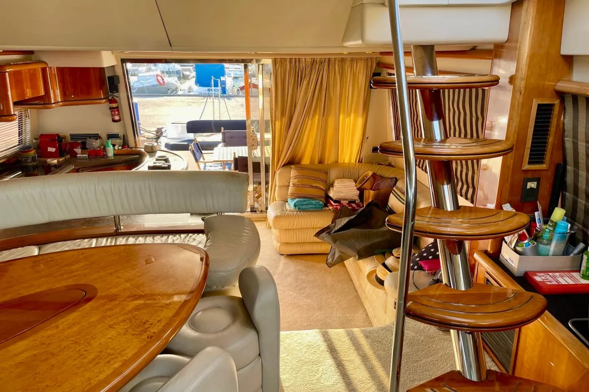 With an impressive overall length of 19.92 meters, this vessel boasts a sleek fiberglass hull designed in a deep Vee shape, ensuring a smooth and stable ride on the water. Powered by twin MAN 1050 diesel engines, each delivering 1050 horsepower, this yacht promises exhilarating speed and reliability, with only 1950 hours of use. The electric windlass adds convenience to your anchoring experience, making it easy to enjoy your time on the water. Accommodating 3 cabins and 3heads, and crew cabin , the Manhattan 64 offers ample space for relaxation and comfort. Whether you’re entertaining guests or enjoying a peaceful getaway, this yacht is designed for luxury and enjoyment. Experience the perfect blend of style and functionality with the Sunseeker Manhattan 64, your gateway to unforgettable adventures on the open sea.