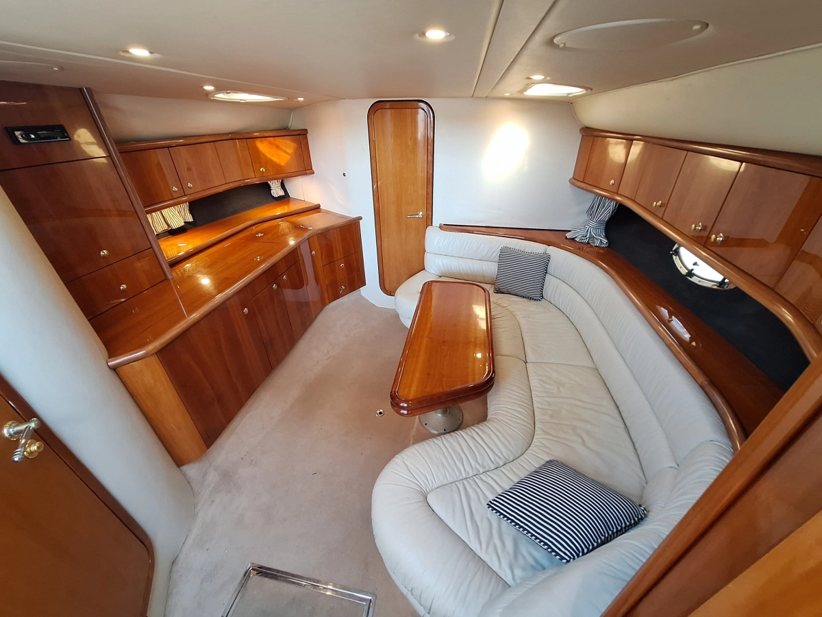Dos camarotes + 1 baño con ducha separada, cocina de gas con horno a estrenar, wc eléctrico nuevo, luces interiores led, plotter, gps, piloto automático con mando a distancia, pescantes manuales escamoteables, colchonetas solarium proa, mandos electrónicos.