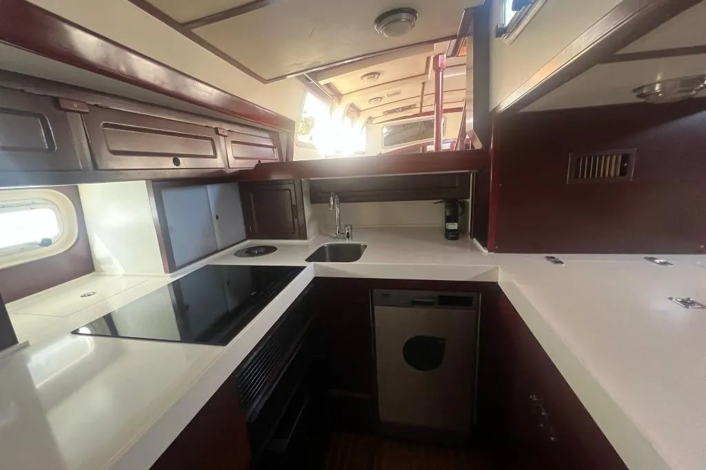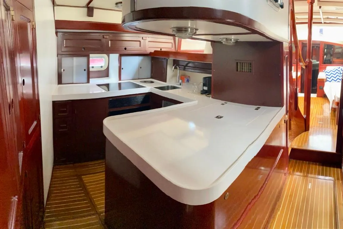 Es un crucero perfecto para viajar, blue-water cruiser ideal para vivir a bordo y navegar en alta mar. Este ketch es sin duda el mejor de todos, extremadamente bien mantenido con muchas mejoras y sin escatimar gastos. Al subir a bordo, puedes ver inmediatamente las mejoras significativas.